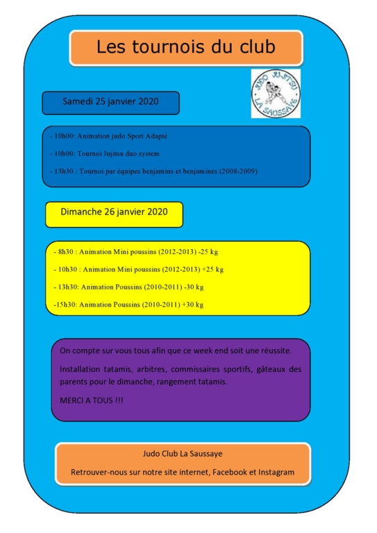 Le JCLS organise ses tournois annuels le dernier week end de janvier : Le samedi 25 et dimanche 26 janvier.