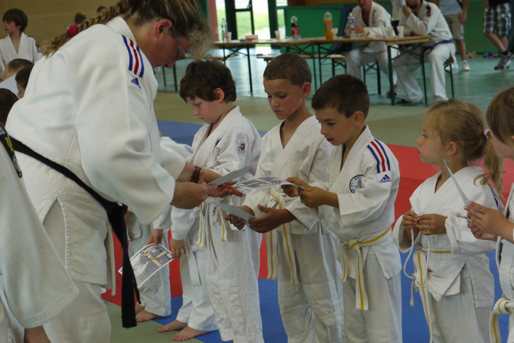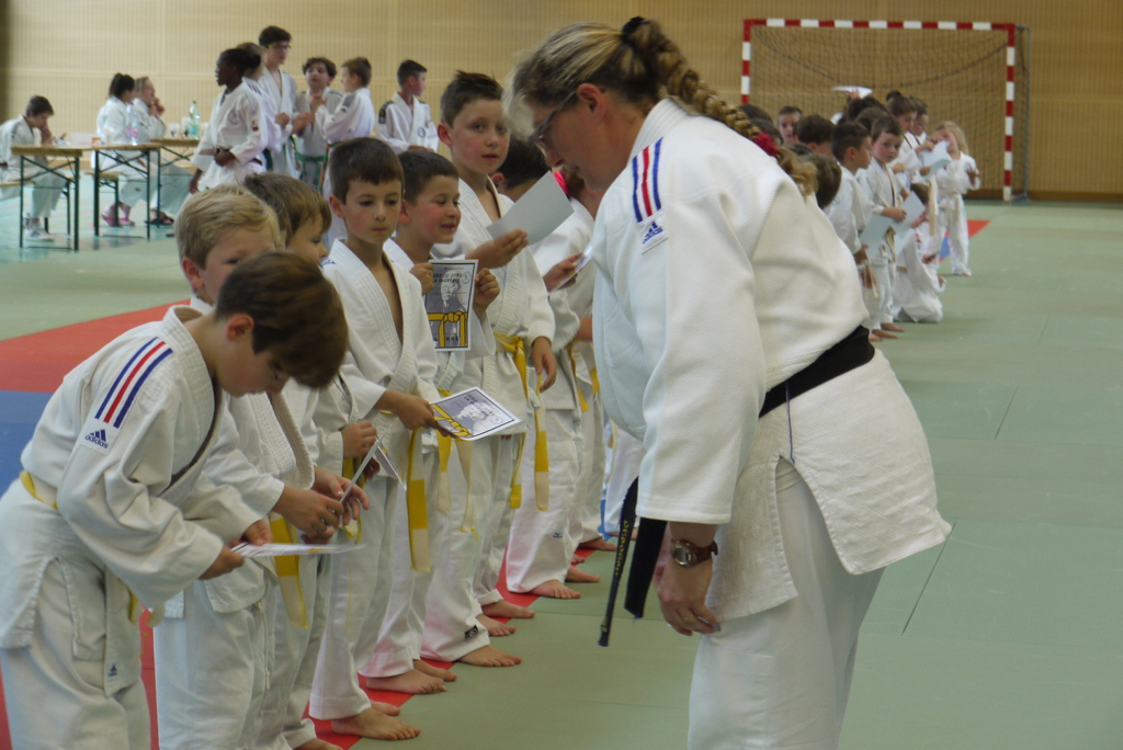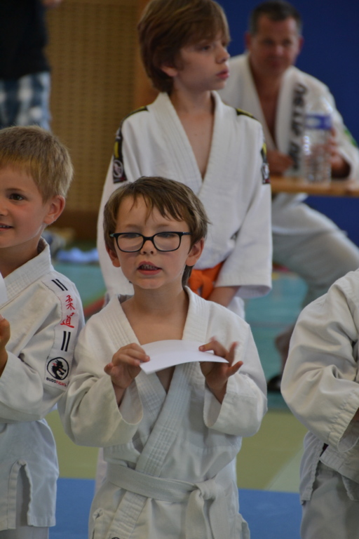 A chacun son tour, et son programme avec les remises de diplôme de grades, du bon comportement et d'assistants du professeur :
