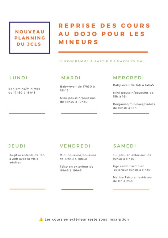 Planning à partir du mardi 25 mai :