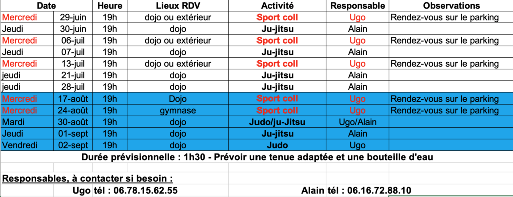 Les mercredis, RDV sur le parking du gymnase de La Saussaye, si le beau temps est au RDV sinon, on monte dans le dojo.